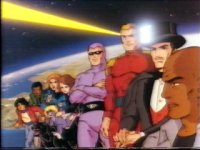 Defenders Of The Earth… Proof that just standing around and talking about a crisis is the best way to handle it. Anyone else noticed this? And if talking about it is not enough, if you stand next to your fellow superheroes in a long straight line, that’ll scare the pants off the enemy.